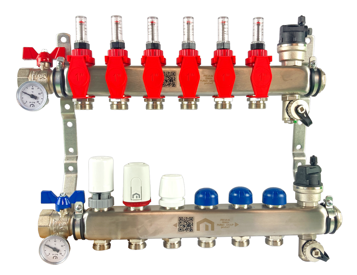 Talosi lämpötilaa voit säätää Jakotukin säädettävillä virtausmittareilla. Tarkemman ja tasaisemman lämpötilan kotiisi saat käyttämällä termostaatteja ja toimilaitteita. Topway-jakotukkiin liität O-rengasliitoksin Kulmasulkuventtiilin tai Suorasulkuventtiilin sekä lattialämmitysputken putkiliittimet. Helppokäyttöiset automaattiset ilmanpoistimet pitävät jakotukin ja piirit jatkossakin ilmattuina, ei enää manuaalista ilmaamista.